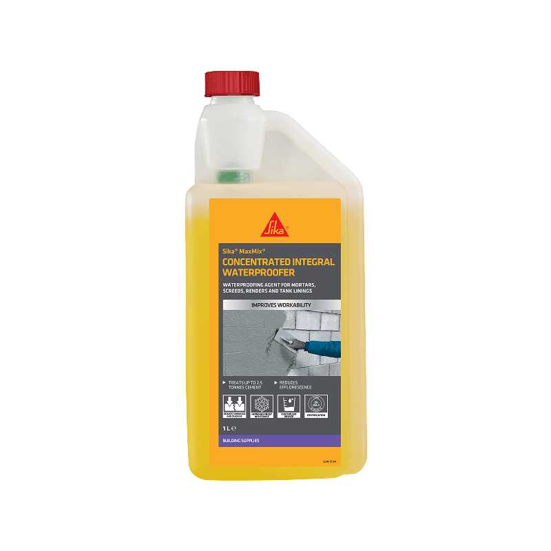 Sika MaxMix Waterproofer is a s a highly concentrated waterproofing and air entraining admixture for sand and cement.