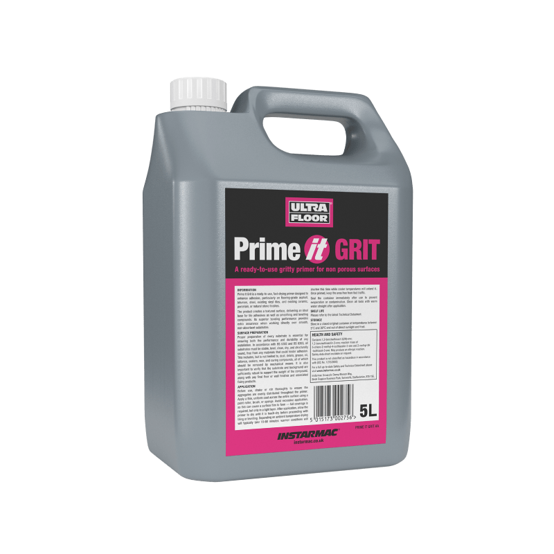 UltraFloor Prime It Grit s a ready-to-use, fast-drying primer designed to enhance adhesion, particularly on flooring-grade asphalt, bitumen, steel, existing vinyl tiles, ceramic and porcelain.