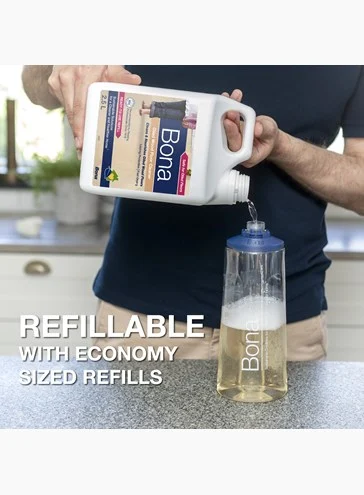 Bona Oiled Wood Floor Cleaner refillable bottle is for use with the Bona Premium Spray Mop for Wood Floors. It is a safe, easy and effective cleaner for oiled wood...
