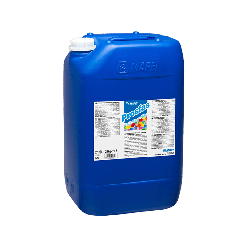 Mapei Prosfas is a solvent-free, silicate-based consolidator for cementitious substrates, with a high penetration capacity.