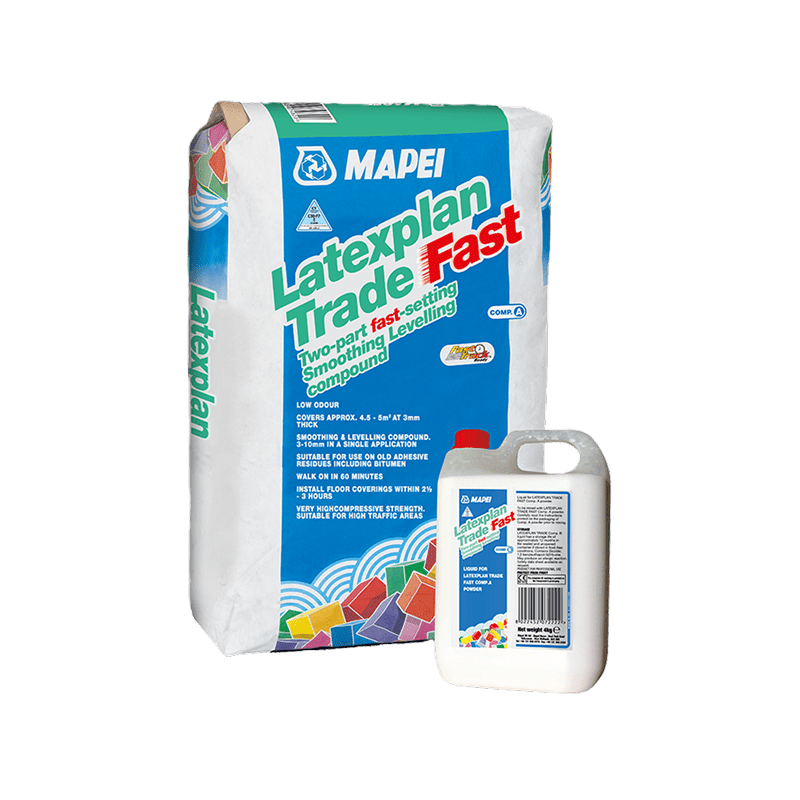 Mapei Latexplan Trade Fast is a two-part rapid curing smoothing/ levelling compound where rapid installation of all types of floor coverings is required on new and existing substrates.