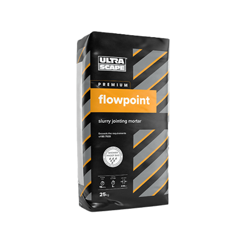 Each 25kg bag of UltraScape Flowpoint Premium requires 4.25 litres of water and must be mixed for between 3 and 5 minutes until a smooth lump-free consistency has been achieved.
