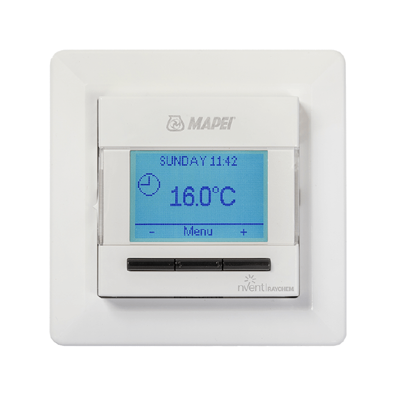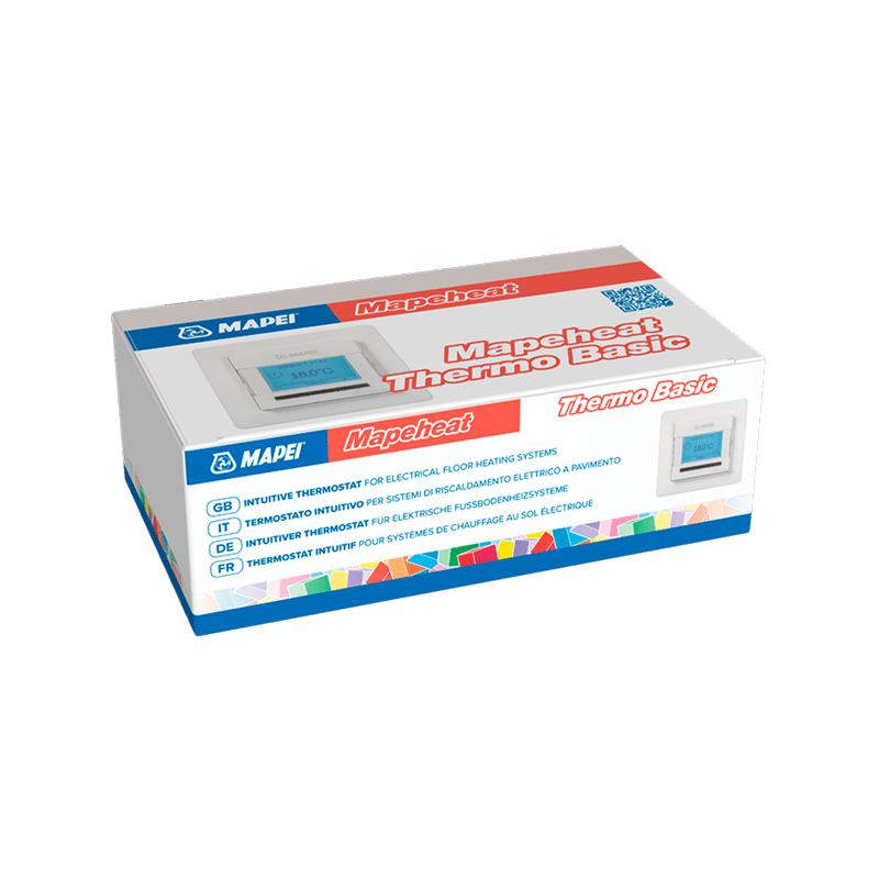 Mapei Mapeheat Thermo Basic is a digital timer thermostat for the Mapeheat electric floor heating systems, equipped with a large digital display and intuitive software for optimal ease of use. Enjoy energy savings with adaptive functioning, as the Mapeheat Thermo Basic calculates when it needs to start heating in order to reach the temperature at the desired time of the weekly schedule.